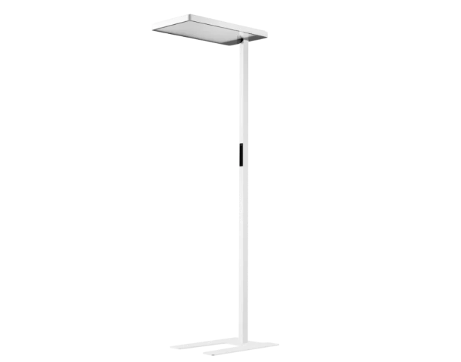 - Modern free-floor standing luminaire with direct/indirect light distribution